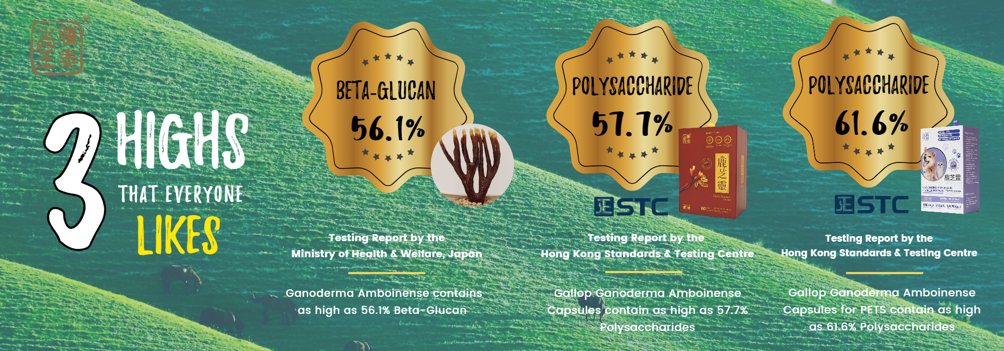 Testing report by the Ministry of Health and Welfare Japan – Gallop’s Ganoderma Amboinense contains beta-glucan as high as 56.1%;