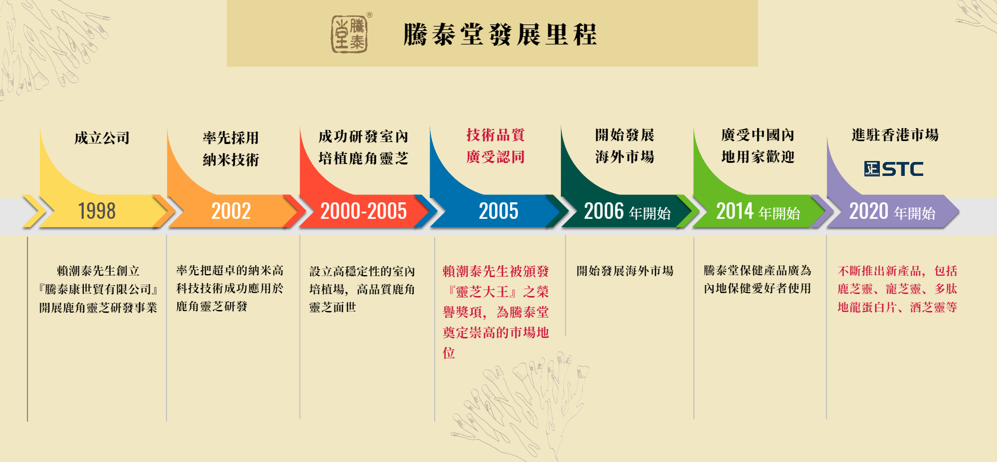 多年來,騰泰康憑藉栽培鹿角靈芝及納米技術,研發出一系列鹿角靈芝產品,涵蓋日常保健、寵物保健、烹調入饌、茶飲、解酒護肝等,多方面將鹿角靈芝的功效融入都市人的生活中,將靈芝普及,不再只停留在日常保健服用的層面。