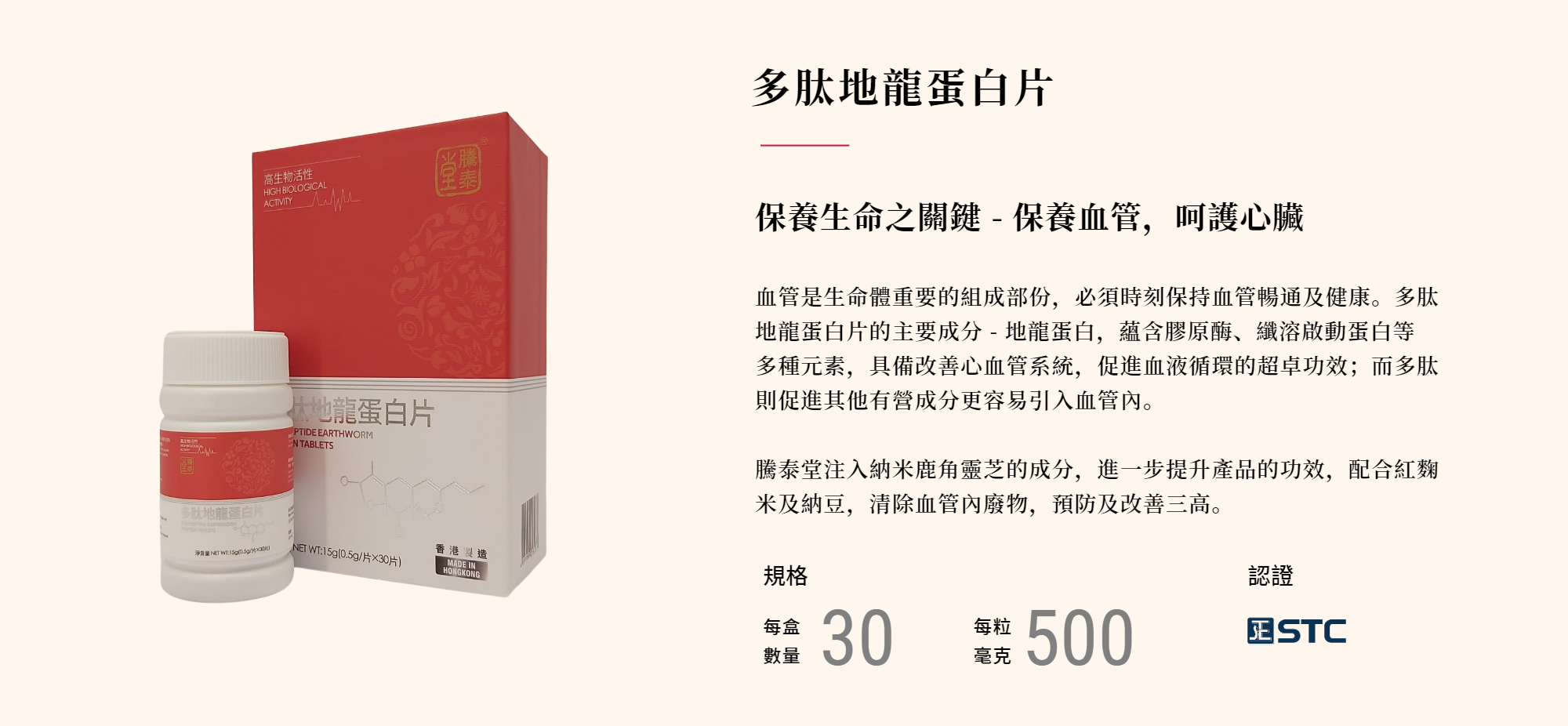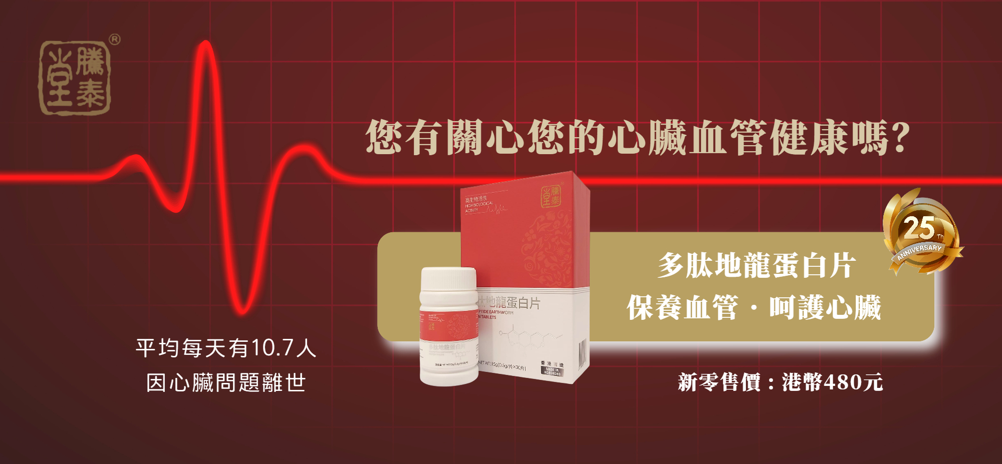 騰泰堂,多肽地龍蛋白片,多肽,地龍,心臟健康,心血管,改善血壓,三高,膽固醇
